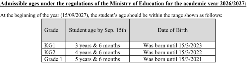 If the candidate meets all the admission criteria, the Student Affairs office will contact parents to set an appointment for an interview for KG candidates, and to share the dates of the entrance tests for candidates in grades 1-12.